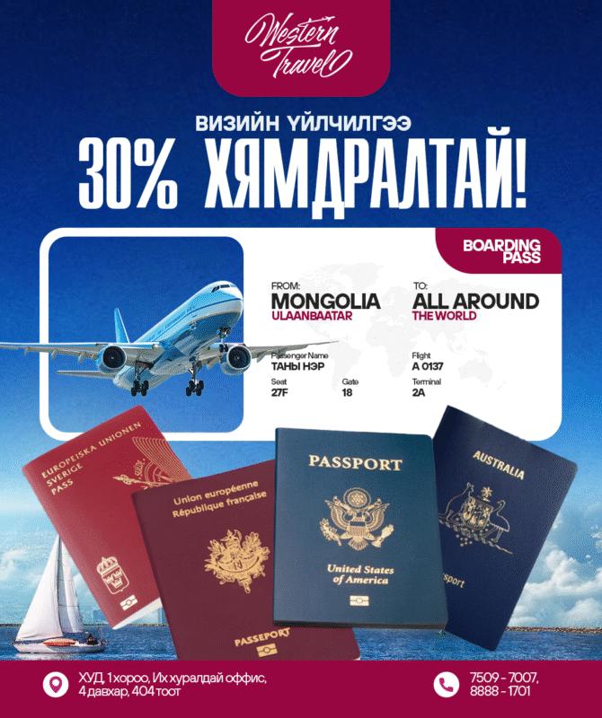 Аялал болон визийн асуудлыг нэг дор шийднэ.