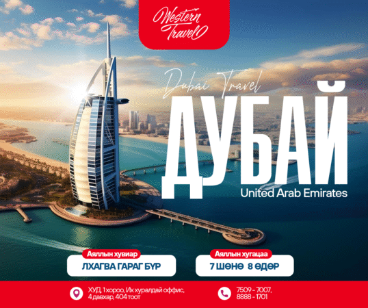 | · Өдөр буудлаа хүлээлгэн өгсний дараа онгоцны буудал явах хүртэл чөлөөт цаг. Дубайгаас Улаанбаатар руу шөнийн нислэгт дамжин сууснаар Араын Нэгдсэн Эмират Улсаар аялсан дурсамжит аялал өндөрлөнө. |